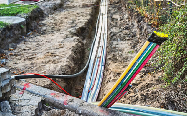 Professional installation of underground service cables from the nearest network pillar or pit to your property, including trenching, conduit installation and terminations.